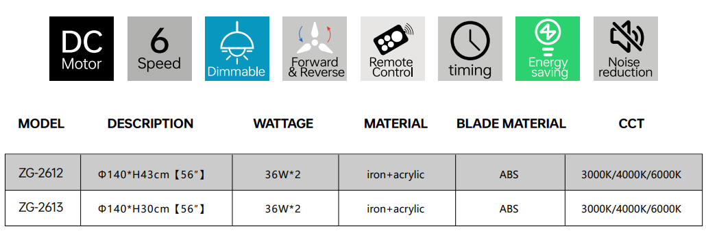 ĐÈN QUẠT TRẦN TRANG TRÍ PHÒNG KHÁCH ZG-2612/ZG-2613